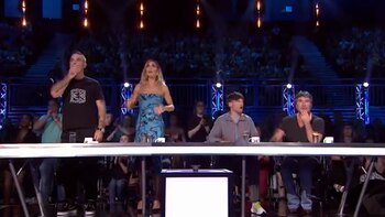 Las cámaras mostraron a los jueces Louis Tomlinson, Simon Cowell, Robbie Williams y Ayda Field muy preocupados y mirando para saber dónde había caído el participante.