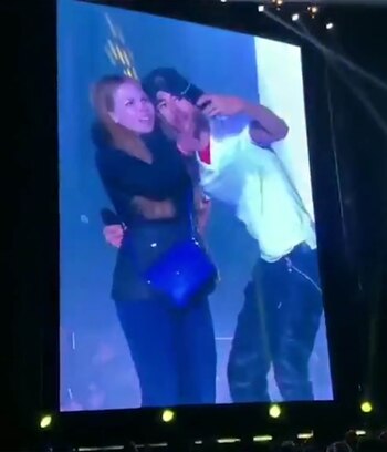 Por si no fuera suficiente, la admiradora le pidió un autógrafo a su ídolo e insistió en permanecer sobre el escenario e incluso se subió sobre él como forma de despedida.