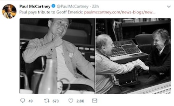 El miércoles, McCartney escribió que Emerick lo visitó este año mientras trababa su álbum "Egypt Station", el cual fue lanzado el mes pasado.