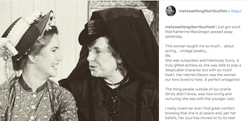 Melissa Gilbert, quien interpretó a Laura Ingalls Wilder en la serie, rindió tributo a MacGregor en Twitter:
