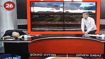 El periodista turco Sukru Oytan colapsó en vivo durante la emisión de un programa de televisión ante la sorpresa del resto de sus compañeros y del entrevistado luego de sufrir un ataque cardíaco. El hecho ocurrió mientras analizaban el partido de fútbol entre los equipos Eskisehirspor y Umraniyespor.