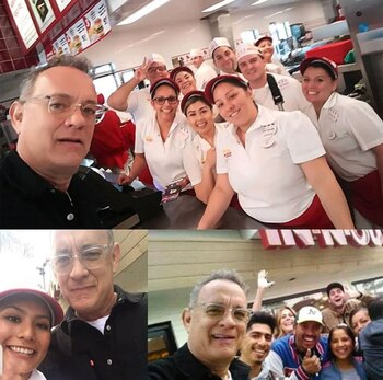 Tom Hanks es uno de los hombres más humildes de Hollywood cuando se trata de mostrarse cercano con el público. Dicha reputación no corre el riesgo de verse empañada, especialmente después de su paso por un local de comida rápida en Fontana, California.