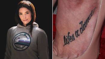 La actriz tiene la frase: "Vive sin arrepentimientos", mal escrita en italiano. El tatuaje dice "vivere senza rimipianti", cuando en realidad debería decir "vivere senza rimpianti".