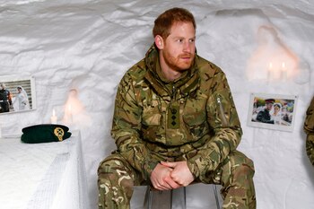 El príncipe Harry, de 34 años, pasó su primer día de San Valentín como un hombre casado en compañía de las fuerzas armadas británicas que participan en una entrenamiento de supervivencia en el círculo polar ártico.