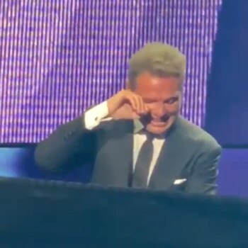 En un video compartido en la cuenta de Instagram luismiguelmexarg se vio el momento en que el intérprete apretó los párpados, miró hacia el suelo y limpió sus lágrimas.