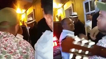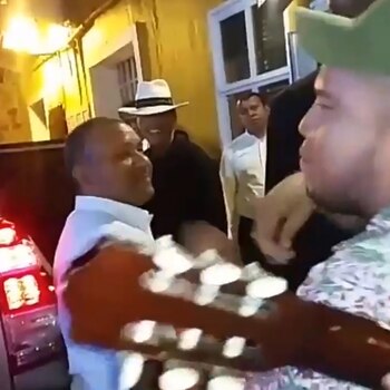 Justo en el momento que salió, McCaribeño y sus amigos comenzaron a cantar a ritmo de guitarra.