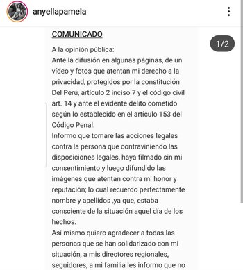 Hace unos días, Anyella aseguró que la difusión del video y fotos atentaba contra su privacidad y era un delito según el Código Penal en Perú.