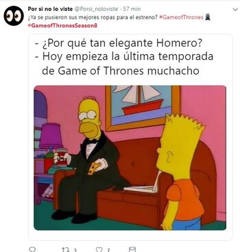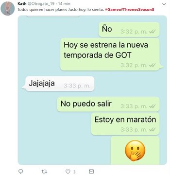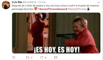 La emoción es tal, que durante horas ha sido tendencia la etiqueta #GameofThronesSeason8, a través de la cual se han compartido memes, mensajes de desesperación y emoción por el estreno.