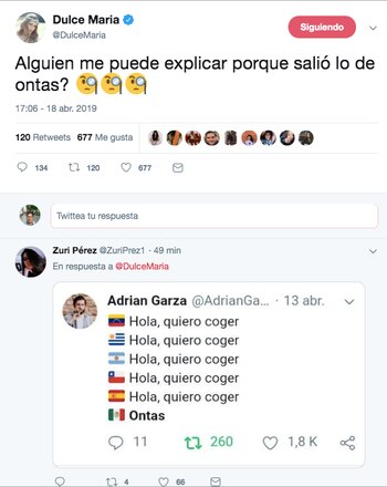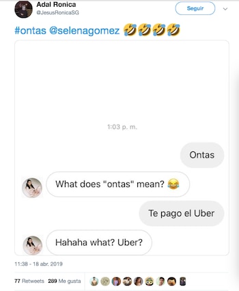 Se trata de "Ontas?", una contracción de la pregunta "¿Dónde estás?". La ex RBD Dulce María preguntó de qué se trataba y un internauta le respondió con el meme que inició la tendencia.