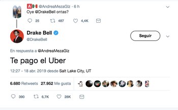 Drake Bell fue otro de los famosos que se unieron a la tendencia desde el principio, por lo que su mensaje ya superó los 100.000 "Me gusta" y los 30.228 retuits.