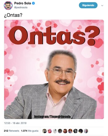 A partir de ahí, otros famosos se unieron al trending topic en Twitter, incluyendo el presentador mexicano Pedro Sola, que a pesar de tener más de 70 años, es muy seguido y querido por los jóvenes en México.