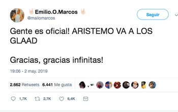 En su cuenta de Twitter propuso "NUESTRO ARISTEMO GLAAD", y de inmediato provocó miles de reacciones que colocaron la frase dentro de las tendencias en México durante varias horas.