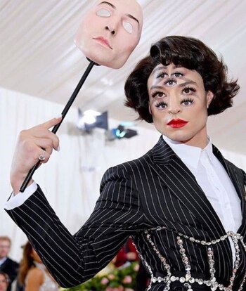 Con siete ojos y una máscara de sí mismo, Ezra Miller fue uno de los que más llamó la atención, gracias a su atuendo a cargo de Riccardo Tisci, director creativo de Burberry, inspirado en El Fantasma de la Ópera.