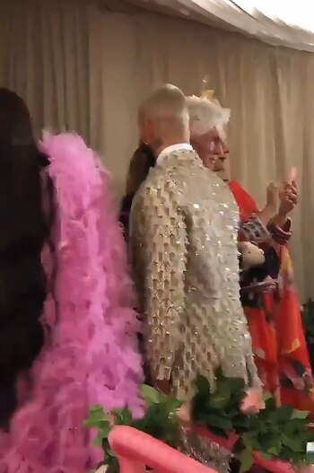A Maluma también se lo vio en otra fotografía siendo opacado por el impresionante vestido en forma de candelabro que la cantante Katy Perry eligió para el evento de moda más famoso de todo el mundo.