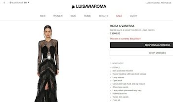 En la página de internet de Luisa Via Roma la prenda aparece con un costo de 2 mil 8 euros (unos 42 mil pesos mexicanos); sin embargo, el vestido -según se informa en el sitio web- está agotado.