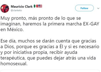 "Muy pronto, más pronto de lo que se imaginan, haremos la primera marcha EX-GAY en México".