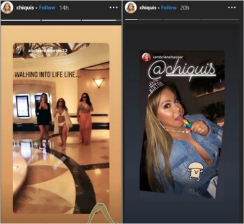 "Chiquis" además dejó ver en Instagram stories una imagen en la que aparecía portando un bikini blanco y otra fotografía en la que disfrutaba de un dulce.