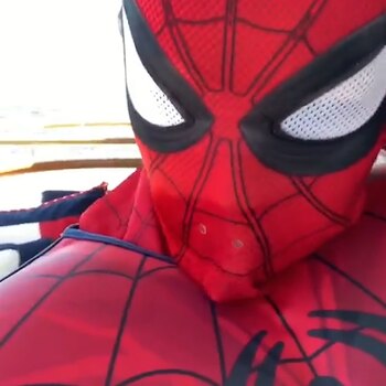De fondo se escuchaba el tema de Spider-Man de la serie animada de los años 60 mientras Thalía lucía orgullosa el traje e imitaba algunos movimientos del superhéroe.