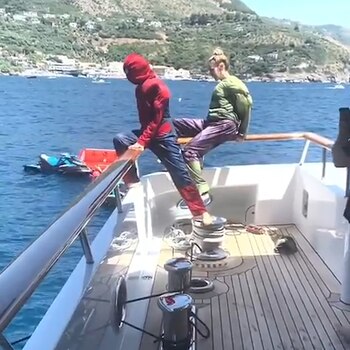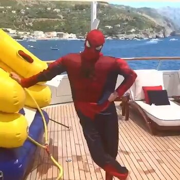 La cantante mexicana Thalía aprovechó su reciente visita a Italia para mostrarse no sólo en bikini, sino también para dejar ver su lado más divertido al estilo de Spider-Man.