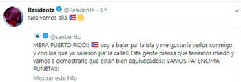 "Voy a bajar pa' la isla y me gustaría verlos conmigo y con los que ya salieron pa' la calle!! Esta gente piensa que tenemos miedo y vamos a demostrarle que están bien equivocados!! Vamos pa' encima puñeta!!!".