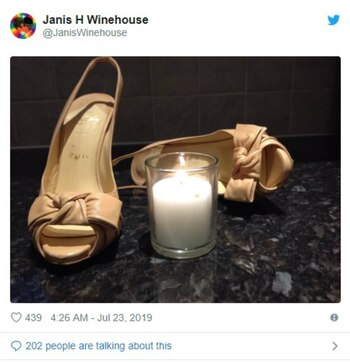 También en redes sociales se manifestó Janis H. Winehouse, la madre de Amy, quien compartió en Twitter una imagen de una veladora junto a unas zapatillas de su hija. No hicieron falta las palabras.