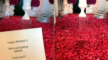En el material se puede ver cómo todo el piso de su casa estaba lleno de pétalos de rosas, junto a otros impresionantes arreglos con las mismas flores.