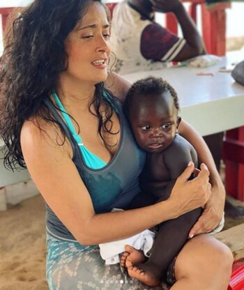 Las imágenes se dieron a conocer en febrero de 2009, pero al parecer el hecho ocurrió meses antes, cuando Salma viajó a Sierra Leona como parte de la campaña Un paquete = Una Vacuna, del Fondo de la ONU para la Infancia (UNICEF),