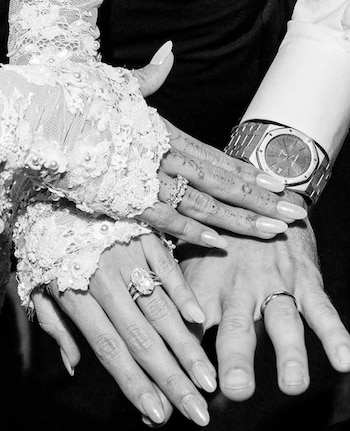 Hailey también presumió los accesorios que utilizó con su esposo. Las sortijas y el reloj demuestran que no escatimaron en gastos para lucir radiantes. El reloj del novio fue un “pequeño regalo de boda”, según compartió el cantante en su Instagram. Se trata de un modelo “Royal Oak” del fabricante suizo Audemars Piguet, valuado alrededor de 40 mil dólares.