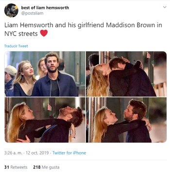 El jueves, Liam Hemsworth se dejó ver en Nueva York de la mano de Maddison Brown, una de las actrices de la serie Dynasty. Los dos viajaron en metro, dieron un paseo por el vecindario West Village y almorzaron juntos al aire libre en la terraza del restaurante italiano Sant Ambroeus, según informó el medio especializado TMZ. Y este sábado, la pareja volvió a presumir su amor en la ciudad de los rascacielos.