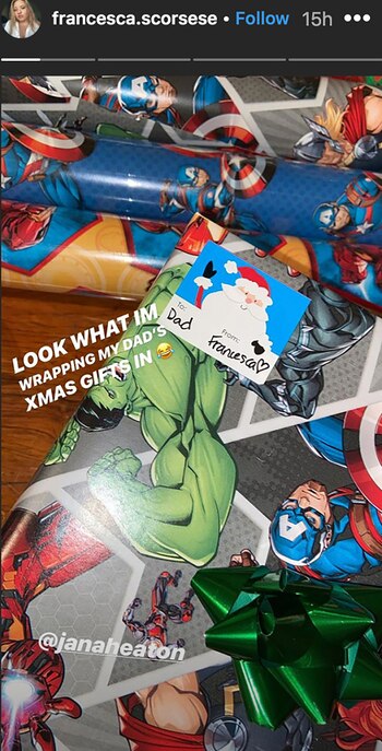 Francesca Scorsese publicó una divertida foto del momento en que envolvió las regalos de Navidad adornados con una envoltura temática de Marvel con el título: “Miren. Estoy envolviendo los regalos de Navidad de mi papá”. No obstante, la hija del director no mostró la reacción de su padre cuando llegó el momento de recibir sus obsequios.