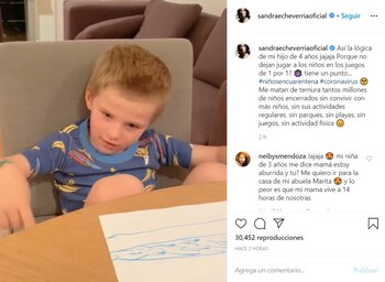 La actriz publicó un video de su hijo Andrés en el que el pequeño se preguntaba por las restricciones para usar los juegos ante la pandemia de coronavirus.