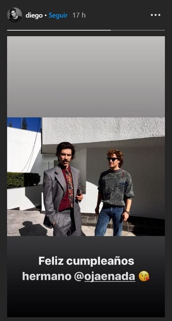 Diego Boneta inició este martes conmemorando el cumpleaños de Óscar Jaenada, el actor español que interpretó el papel del papá de Luis Miguel en la serie biográfica que ambos protagonizan. A través de una instastory con un breve mensaje, el también cantante envió su felicitación a su “hermano” con un emoji de beso.