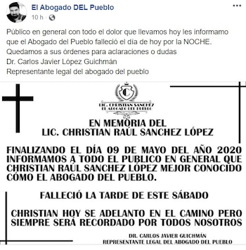 A través de la cuenta de Facebook oficial de Sánchez, quien era conocido como “el abogado del pueblo”, se supo de su deceso.