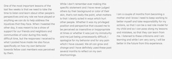Ante las críticas, Michele emitió un comunicado en el que se disculpó y se comprometía a ser mejor en el futuro. “Aunque no recuerdo ni siquiera haber hecho esas declaraciones y nunca he juzgado a nadie por su origen o el color de su piel, no se trata de eso, lo que importa es que me comporté de forma que herí a a otra gente”, afirmó. “Ya fuera mi posición privilegiada y mi perspectiva lo que causaba que a veces mi conducta fuera percibida como insensible o inapropiada o fuera solo por inmadurez o por ser solo una persona difícil, me disculpo por mi comportamiento o por cualquier daño que pueda haber causado".