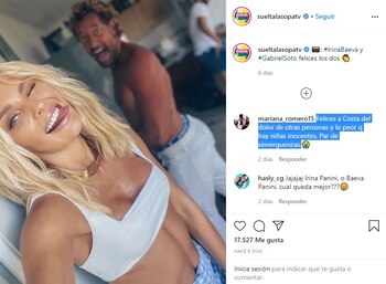 “Irina Panini”, “Los Paninis parte 2”, “La Panini 2, esto también se está haciendo viral”, “Felices mientras les dure, el dure aún no llega y tiene nombre apellido así que suerte Soto”, “El karma no perdona”, “Eres una infeliz, roba marido… Rata de dos patas” fueron algunos de los comentarios que publicaron los internautas.