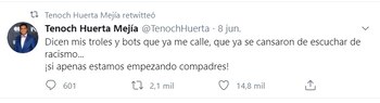 Para Tenoch Huerta, conocido por sus papeles en producciones de éxito como Narcos México o Días de Gracia, el país tiene que abrir los ojos y admitir que el racismo no solo existe, sino que se ha normalizado; e impide injustamente el desarrollo educativo, profesional y social de millones de mexicanos, tal y como demuestran numerosos estudios.