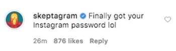 Pero el revuelo no terminó en su look sino que recién empezó allí… Porque al cabo de unos minutos -y de miles y miles de likes casi instantáneos- apareció un llamativo comentario. El famoso rapero Skepta -una de las estrellas más importantes de la escena del rap británico, con 15 años de carrera a sus espaldas- parece que quedó impactado con el posteo de la cantante y se animó. “Por fin tienes tu contraseña de Instagram, ja ja”, escribió. Una frase simple, pero en el código de las redes sociales es suficiente signo de coqueteo online. Ella, lo vio entre la marea de comentarios y contestó con el emoji de guiño de ojo y lengua afuera y un corazón.