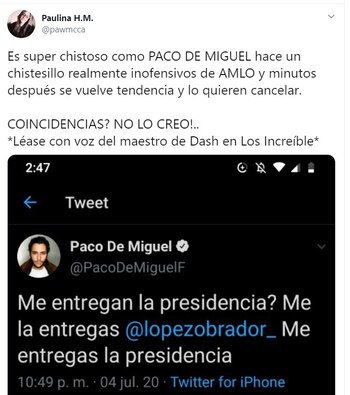 El nombre del comediante Paco de Miguel lideró las tendencias de Twitter en México debido a comentarios que se desataron tras un chiste sobre el presidente Andrés Manuel López Obrador.