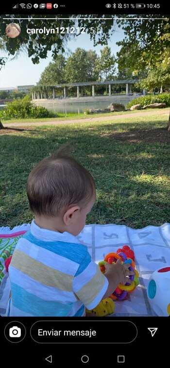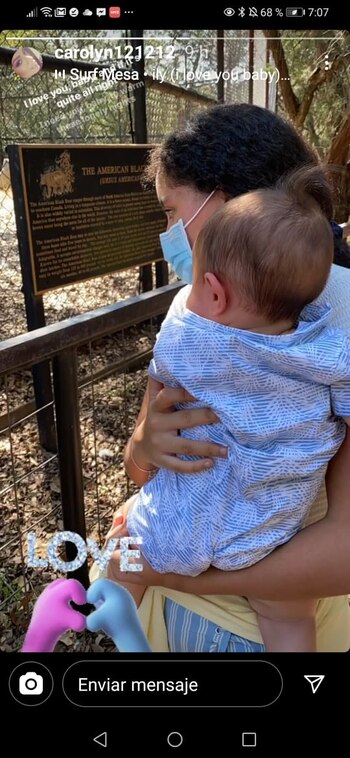 En ocasiones anteriores la joven ya había mostrado aspectos de su bebé, siempre protegiendo la identidad del pequeño, ya sea captándolo de perfil o agregando un emoji. En esta ocasión se ve a su hermana cargándolo mientras lee información del oso negro americano dentro del parque en un tablero de madera; y en otra de las historias compartidas aparece el niño con un juguete encima de una manta colocada a modo de picnic en el lugar del que no compartió ubicación, pero se infiere que se trata de un parque zoológico cercano a la localidad donde radica Adams y se ha mantenido todos estos meses de pandemia al lado de su pareja y sus hijos en Houston, Texas.
