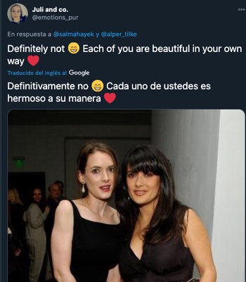La mexicana compartió una fotografía en su cuenta de Twitter sonriendo y con una blusa negra de encaje, el cabello corto y humedo, muy el estilo también de Ryder en la década de 1990, sin embargo era una moda común y los internautas consideraron en su mayoría que su belleza era única y diferente.