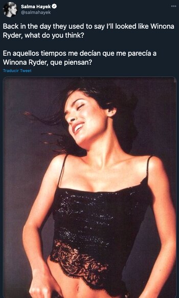 La actriz Salma Hayek dio de qué hablar a sus seguidores, con quienes suele tener una intensa interacción y les cuenta detalles de su vida profesional, ahora contó que cuando era más joven le decían que se parecía a Winona Ryder.