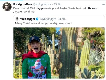 El pasado 24 de diciembre Mick Jagger publicó una fotografía en sus redes sociales con el mensaje “Feliz Navidad y Felices fiestas a todos”, desatando la euforia de los internautas ante la interrogante de si el cantante inglés se encuentra en tierras mexicanas.