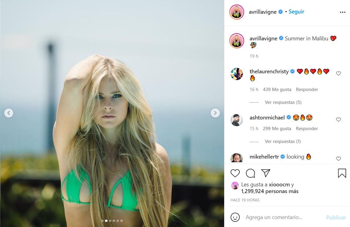 La cantante Avril Lavigne sorprendió a sus admiradores luego de publicar varias fotografías con un bikini.