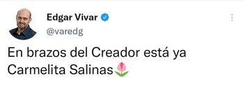 “Su carisma llenaba de luz cualquier lugar donde estaba y así voy a recordarla. A su familia le expreso mis más sentidas condolencias. Q.D.E.P Carmen Salinas”, ahondó el actor y productor.