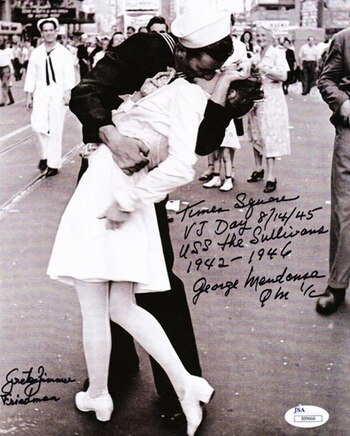 Otra famosa foto del segundo conflicto mundial. La foto, tomada el 14 de agosto de 1945 por Alfred Eisenstaedt retrata los festejos por el fin de la guerra en Times Square, Nueva York.
