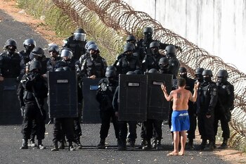 En tanto, un grupo de policías permanece en una especie de patio que separa a ese ala del centro penitenciario de otras dos comandadas por el Comando Vermelho, de Río de Janeiro, otra de las organizaciones criminales más grandes del país.