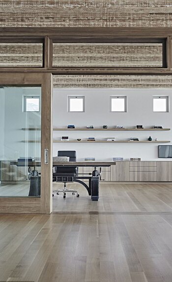 El piso es de roble seco, con 80 años de antigüedad, y en algunos sectores, paredes de vidrio.