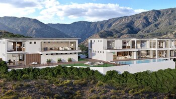 El complejo consta de dos propiedades. La principal cuenta con cinco dormitorios y misma cantidad de baños. Tiene, además, una envidiable vista al Pacífico.