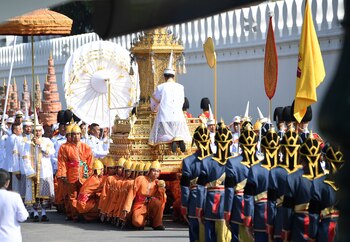 La ceremonia que se extenderá durante todo el día comenzó al amanecer con la llegada en un Rolls Royce, con 20 minutos de retraso, de su hijo y heredero, el rey Maha Vajiralongkorn, vestido con el uniforme militar de gala.