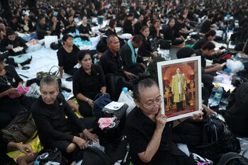 En la mañana, en las calles unas 200.000 personas esperaban en el trayecto del convoy funerario, una procesión que terminará a las 22H00 (15H00 GMT) cuando Maha Vajiralongkorn encienda la pira.